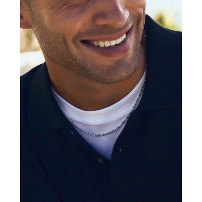 Sam halsband är en snygg klassisk, lite smalare, fasettslipad pansarkedja som du gärna bär alla dagar i veckan, här i blankt rostfritt stål. Sam halsband är en perfekt och uppskattad present som du också gärna matchar med armbandet till.