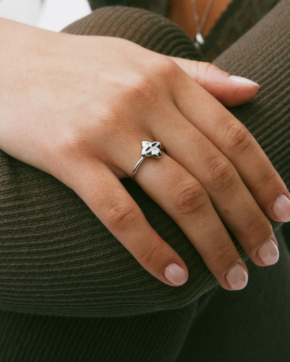 Scala, stålring med en blomform i en tidlös design inspirerad av klassiskt kakel med fasetter som fångar ljuset.