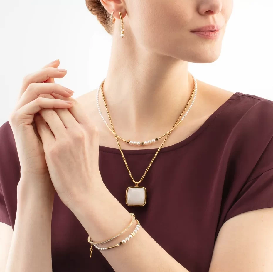 COEUR DE LION - Stålhalsband Shimmering Princess Pearls Gold/White