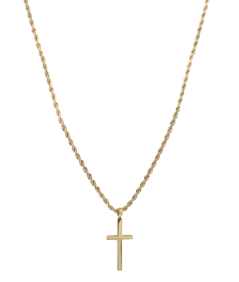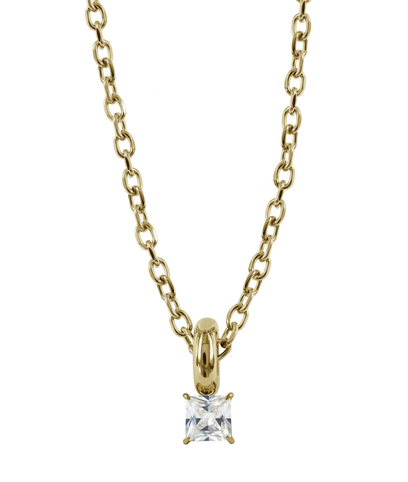 Sierra guldpläterat stålhalsband med ankarlänk, ett hänge med en kvadratisk kubisk zirkonia kristall.