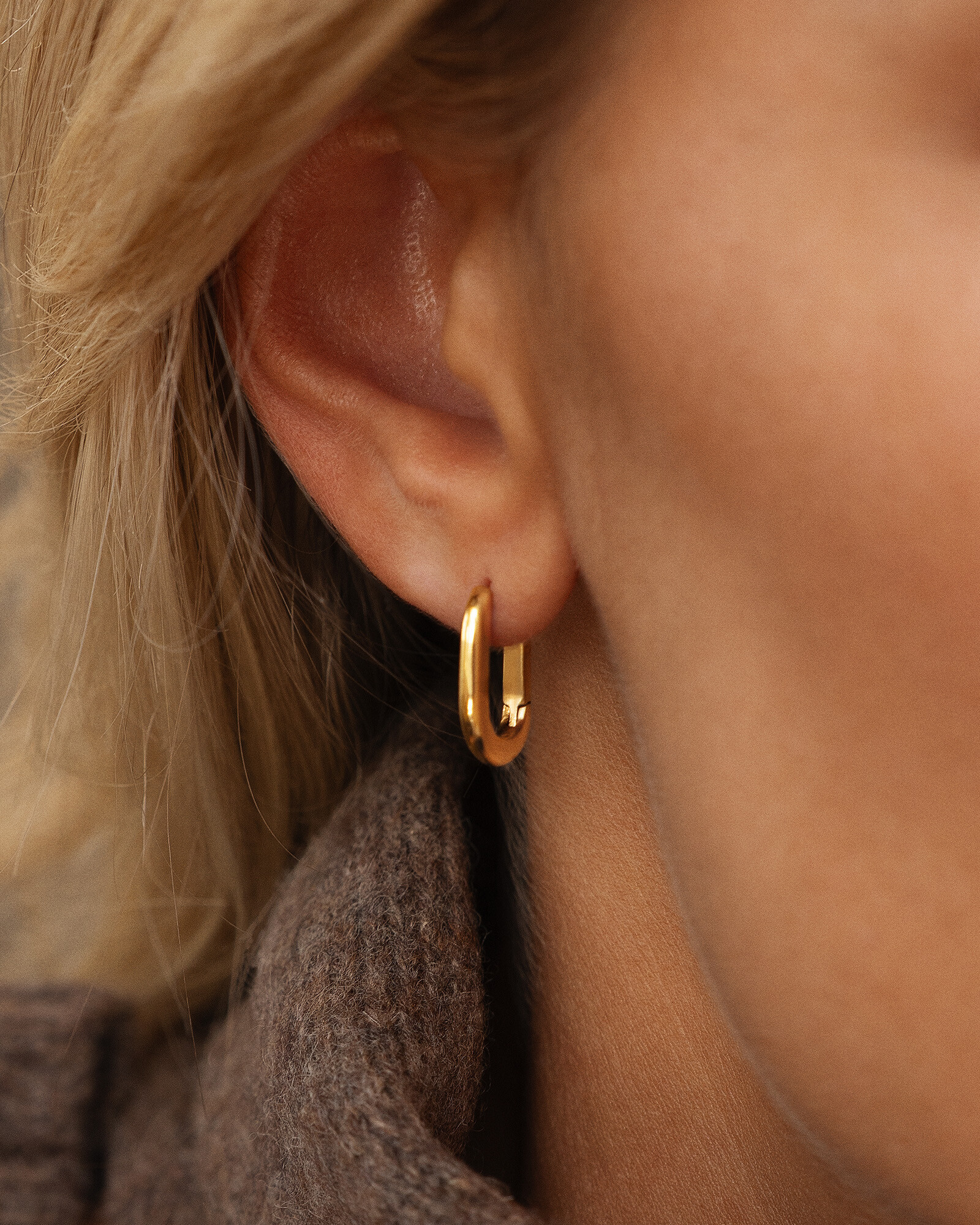 Slim U-Hoops glimmar varmt i guldfärgad ton. Den slanka U-formen med mjukt rundade linjer ger ett rent, tidlöst uttryck som är lätt att bära och matcha – från vardag till kväll.