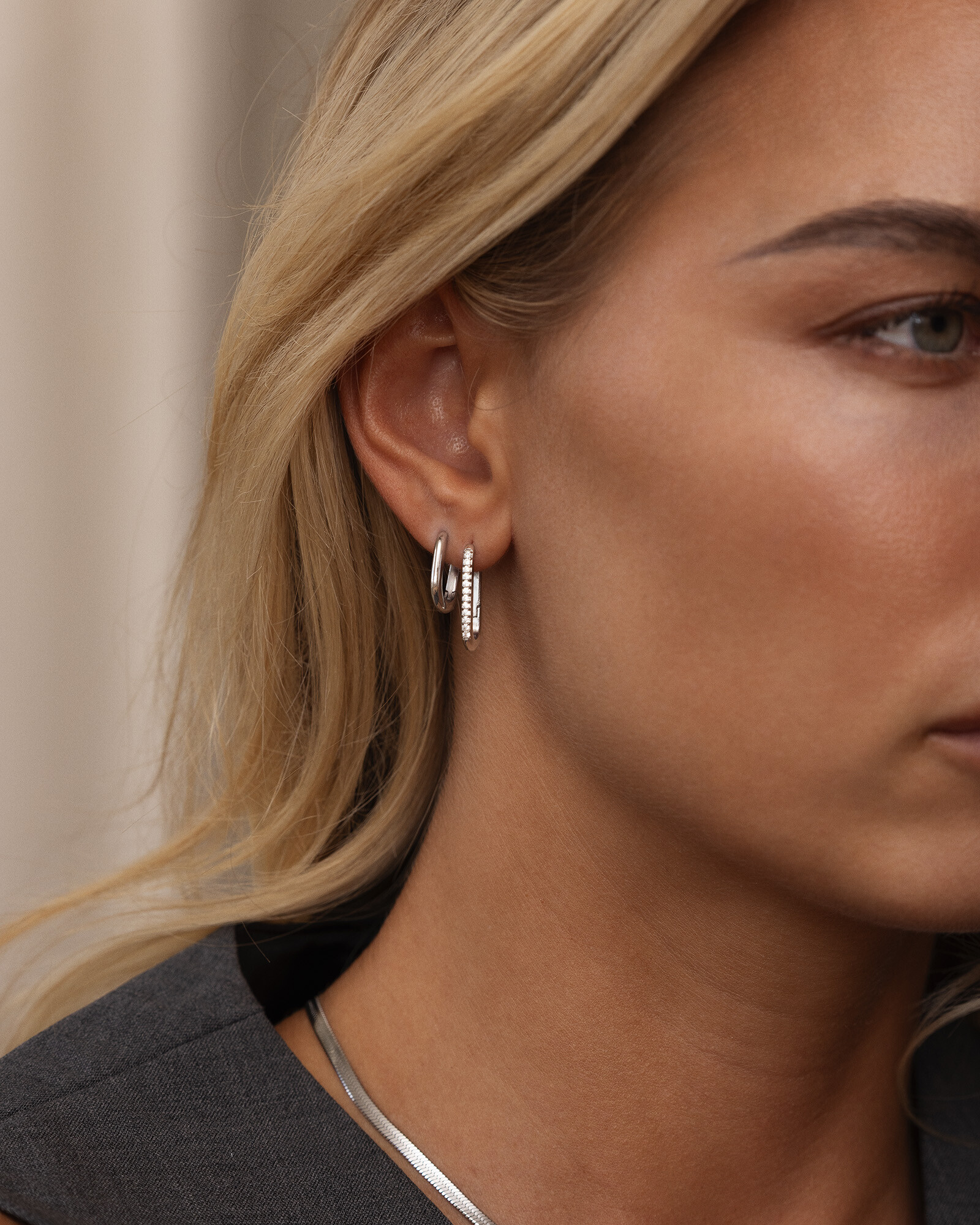 Sparkle U-Hoops skimrar i silverfärgad ton. Den smala U-formen med vita Cubic zirconia ger ett rent, gnistrande uttryck i en nätt storlek. En stilren finish som fungerar vid alla tillfällen.