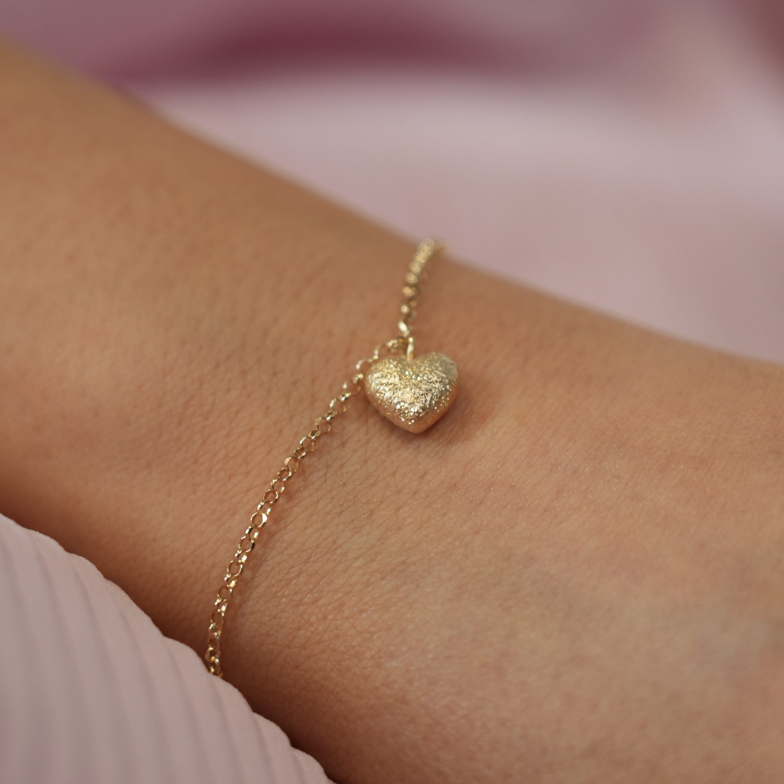 Vackert armband med ett massivt hjärta i återvunnet 925 förgyllt sterlingsilver.