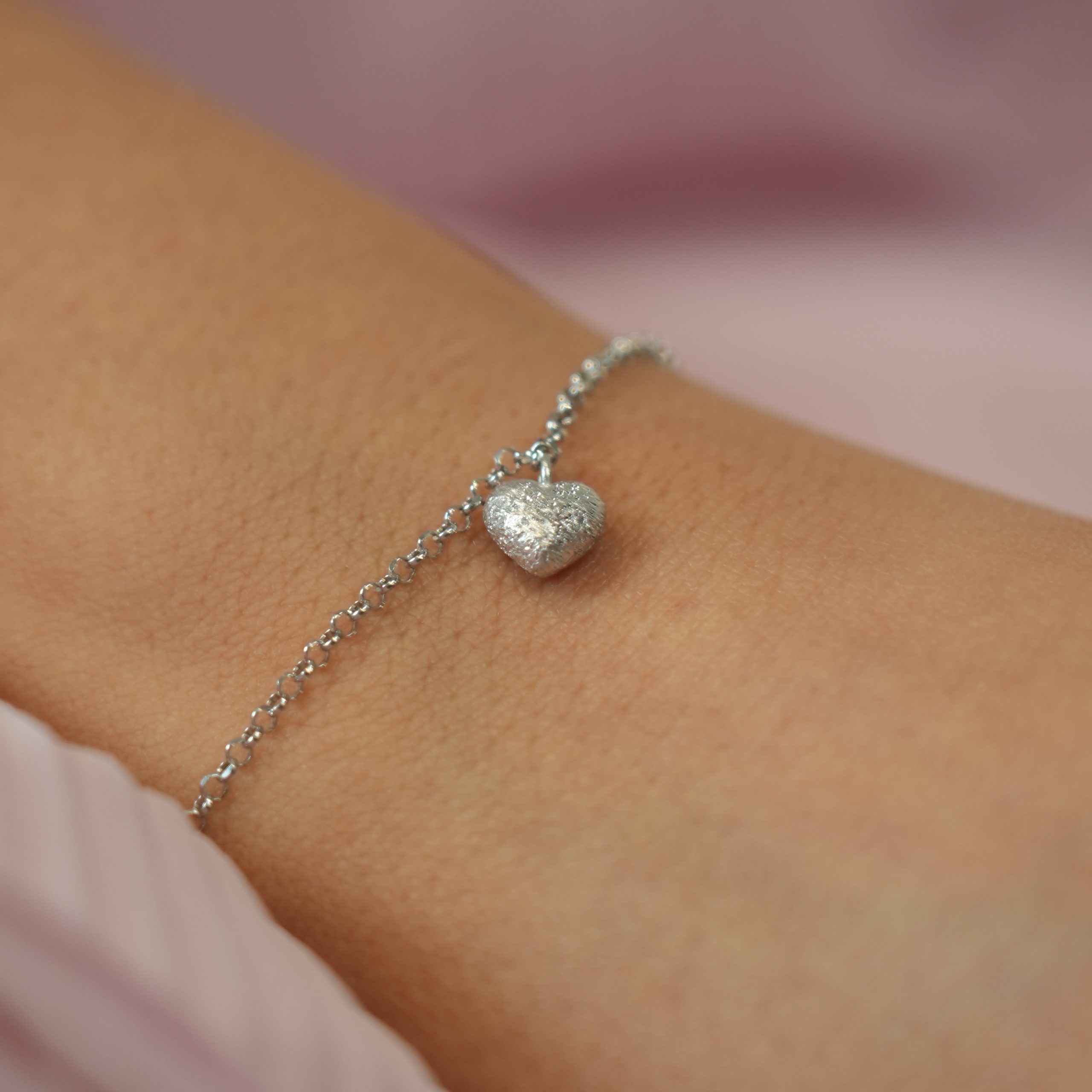 Vackert armband med ett massivt hjärta i återvunnet 925 rhodinerat sterlingsilver.