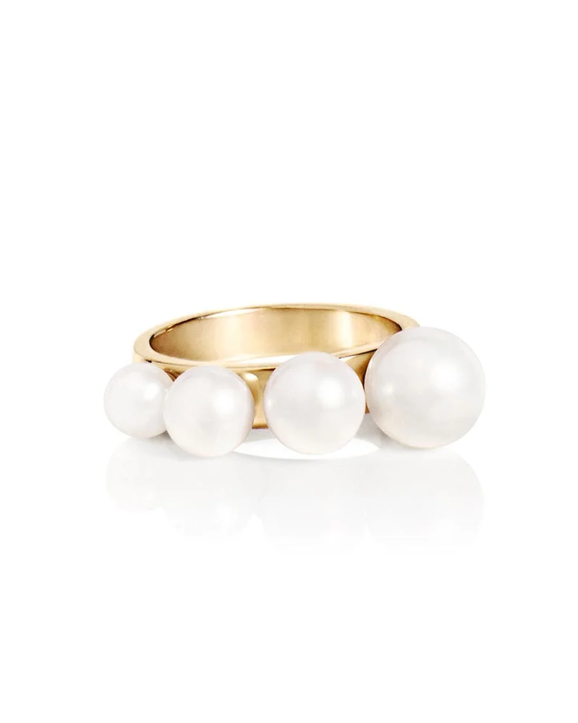 Tidlös ring med fyra runda sötvattenpärlor i en gradientdesign. En lekfull ny klassiker i 18k guldpläterat silver. Strings of pearl finns även som halsband och örhänge.