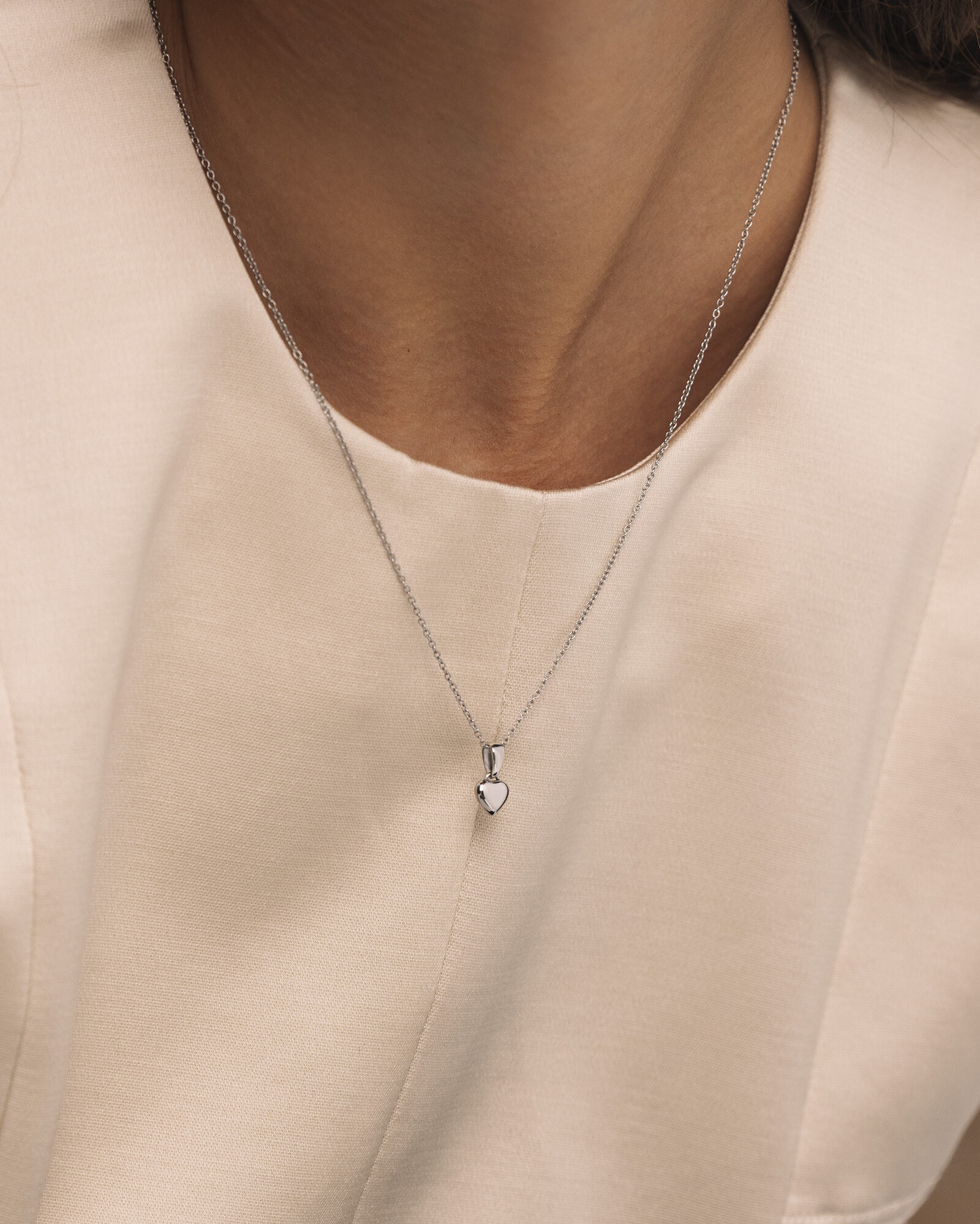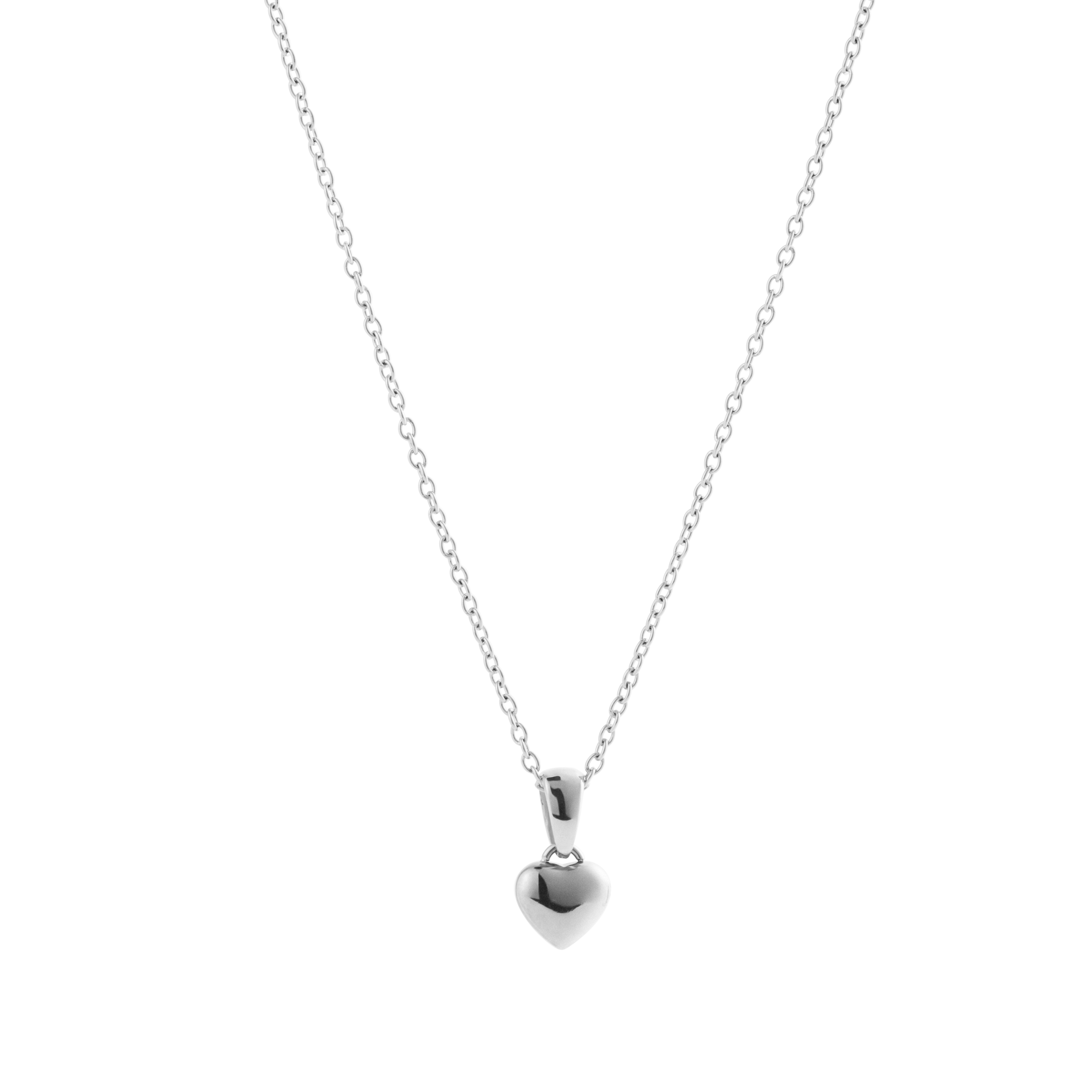 Ett halsband i stål med ett hjärthänge i mellanstorlek, skapat för att symbolisera kärlek med en modern känsla. Tidlöst, elegant och gjort för att bäras nära varje dag.