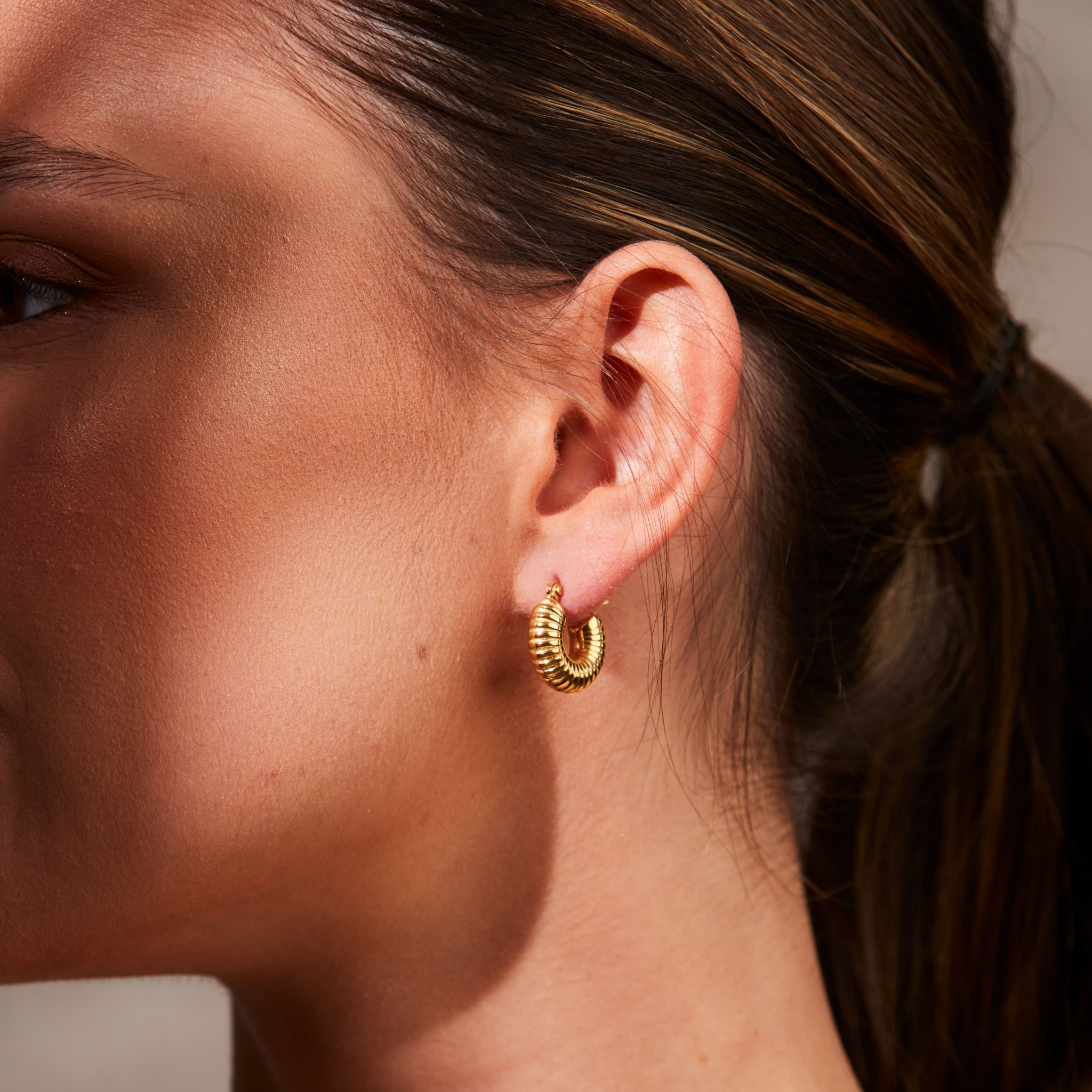 SINTRIDOUs ”Golden See Shell”-creoler, inspirerade av vackra snäckskal, fångar strandens skönhet. Tillverkade i kirurgiskt stål med ett lyxigt 18 karats guldöverdrag, kombinerar de hållbarhet och tidlös elegans. Perfekta för att ge din look en sofistikerad touch, är dessa örhängen både unika och iögonfallande. Bär med dig havets magi varje dag.