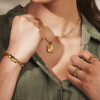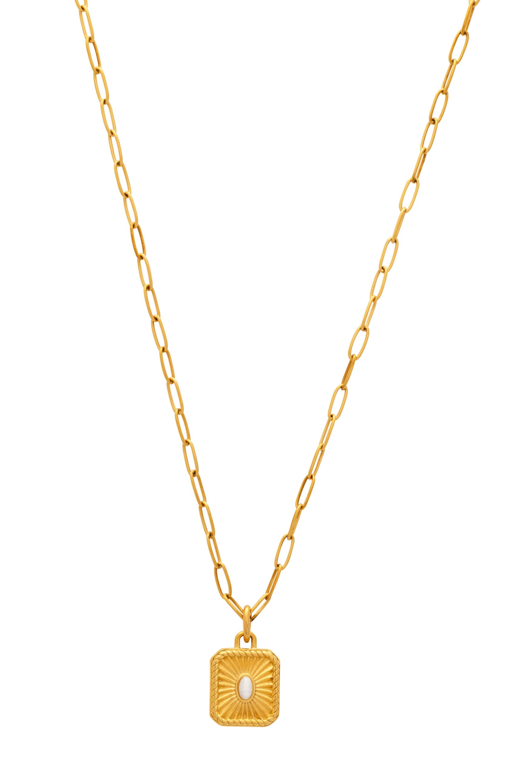 Upptäck SINTRIDOUs eleganta halskedja ”Milky White Gemstone”, en perfekt kombination av stil och detaljrik skönhet. Inspirerad av antika Greklands marina traditioner, har denna moderna ankarkedja en vacker berlock med en mjölkvit ädelsten i mitten. Tillverkad i rostfritt stål och förädlad med ett lyxigt 18 karats guldöverdrag, blir detta halsband ett vackert tillskott i din smyckeskollektion.