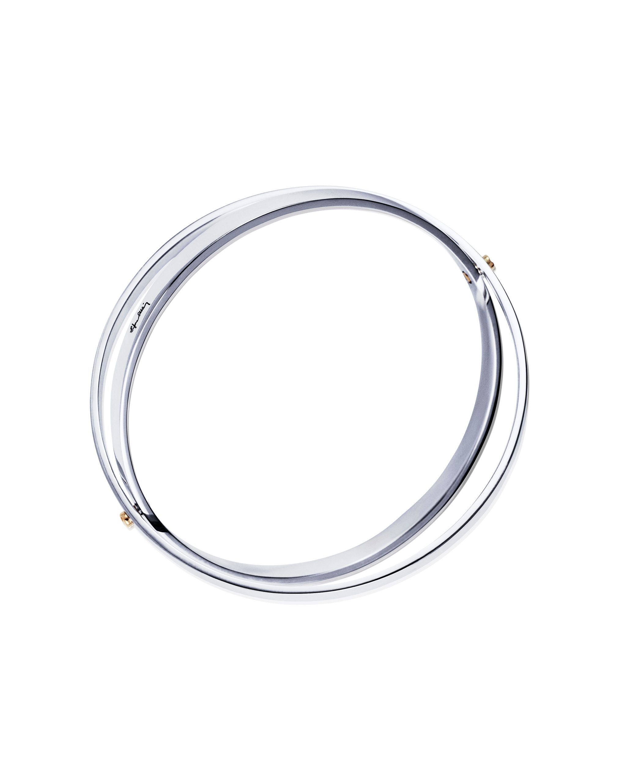 Stelt armband i återvunnet sterlingsilver med två sammanlänkade och vridbara ringar, nitar i återvunnet 18k guld.